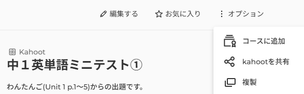 これが最強の時短テクニックです。カフートには世界中の先生が作ったクイズが公開されており、無料で使わせてもらうことができます。