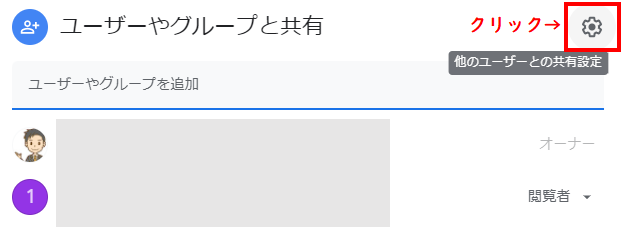 右上の歯車マーク「他のユーザーとの共有設定」をクリック。
