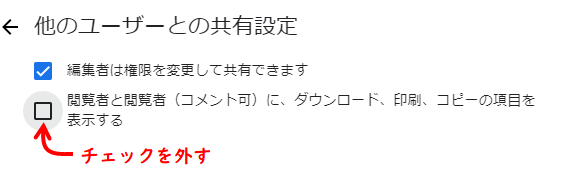 以上の設定で生徒側(閲覧者側)にはダウンロードボタンが表示されないようになります。