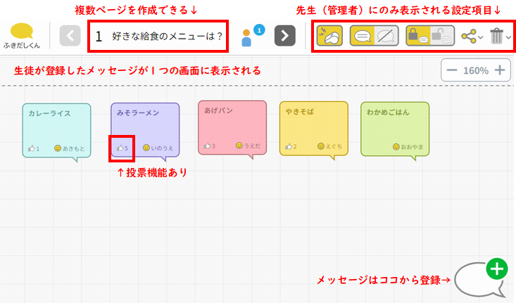 クラスみんなでひとつのテーマについてアイデア・意見を出しあうといった活動に使えます。