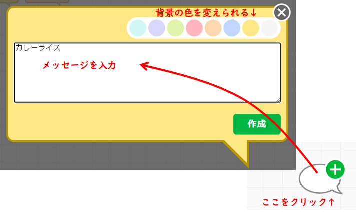 右下の「+」マークをクリックすることで、メッセージ(ふきだし)が登録できます。