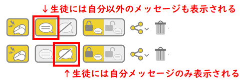 先生は、児童・生徒がほかのひとのメッセージを変更(編集、削除、移動)できるかどうかを設定することができます。