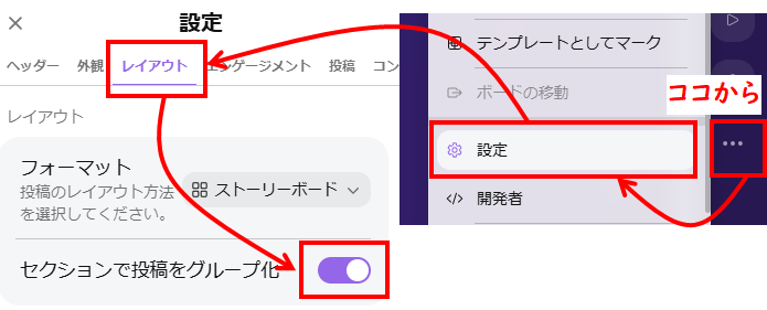 【セクションで投稿を分けたボードの例】